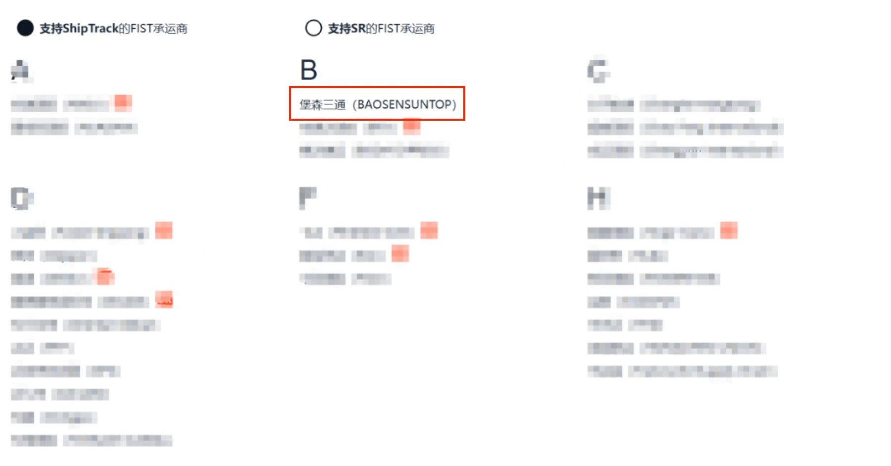可以复制以下链接,访问亚马逊官方列表:https://gs.amazon.cn/fist/fistlist,点击支持Ship Track的承运商,即可查找到堡森三通。