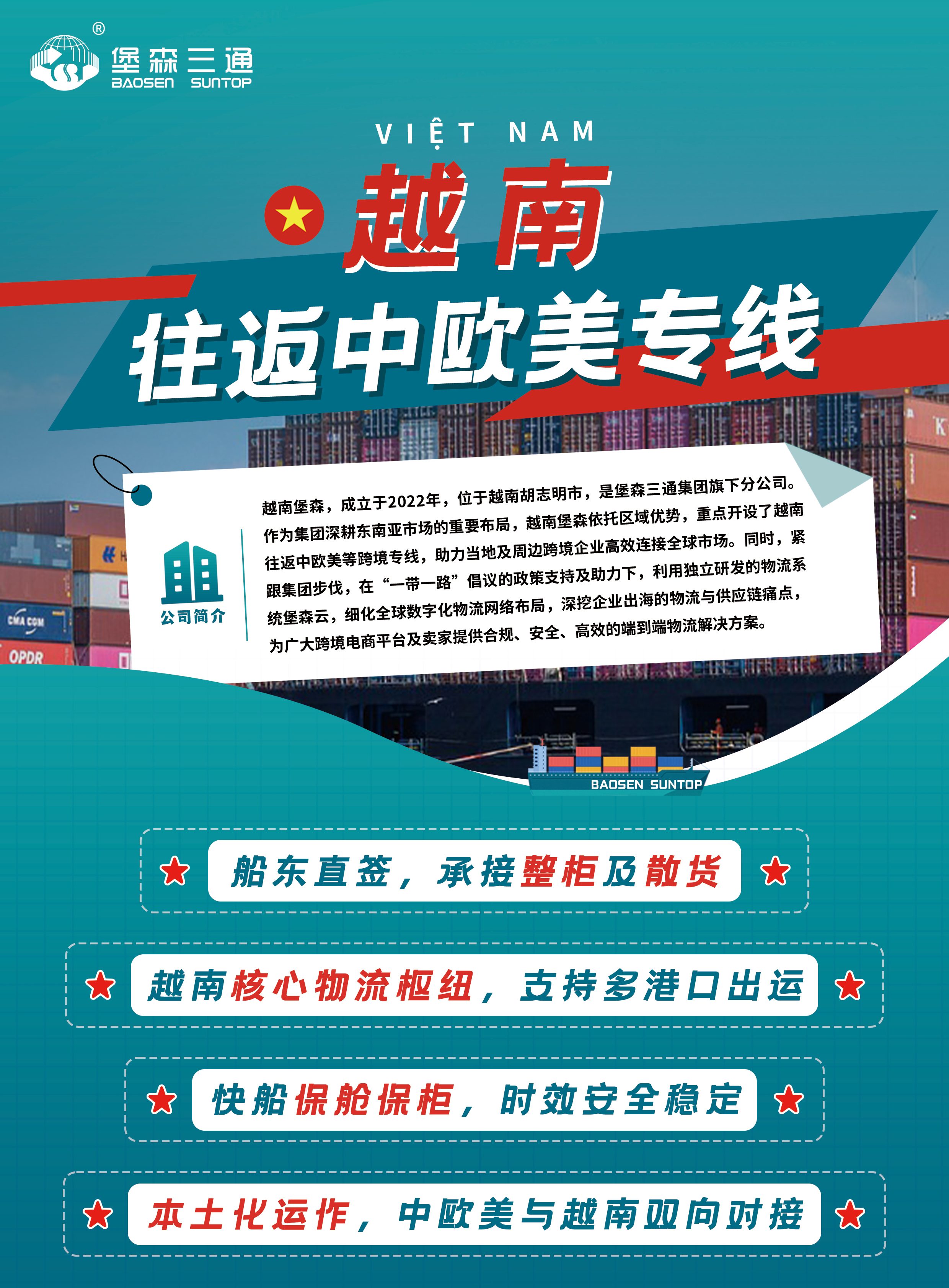 同时,堡森三通越南分公司也是亚马逊SPN服务商,可以为广大跨境电商平台和卖家提供更专业、合规的跨境物流解决方案,助力客户高效出海。